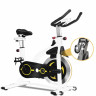 Спин-байк CHAOKE с дисплеем удобнее и тише других. Прочная стальная рама и алюминиевый маховик весом 19 килограмм обеспечивают устойчивость во время езды на велосипеде. Он выдерживает нагрузку до 150 кг и подходит для пользователей ростом от 146 до 198 см. Система магнитного сопротивления позволяет легко и удобно изменять интенсивность тренировки, что делает ее идеальным выбором как для начинающих, так и для профессионалов. Гибридная система с магнитом обеспечивает плавную, почти бесшумную езду на велосипеде, обеспечивая полную безопасность благодаря нажимному аварийному тормозу. Благодаря 5 уровням регулировки высоты сиденья и 6 уровням высоты руля этот велотренажер отвечает потребностям людей разного роста. Большое, мягкое и дышащее сиденье обеспечивает комфорт при длительной езде на велосипеде. Цифровой ЖК-экран на велотренажере позволяет отслеживать время тренировки, скорость, количество сожженных калорий, дистанцию, частоту сердечных сокращений и данные одометра в режиме реального времени. Это позволяет легко корректировать режим тренировок. Держатель для планшета позволяет вам слушать музыку или смотреть видео во время тренировки, что делает ваши тренировки более приятными. Нескользящие педали в форме стальной клетки подходят для всех размеров стопы и обеспечивают полную защиту, предотвращая скольжение и движение вперед. Они также оснащены регулируемыми ремешками для надежной фиксации. Транспортировочные колеса велосипеда облегчают его перемещение.