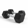 Гантель обрезиненная с хромированной ручкой. Вес гантели 12.5 кг, в комплекте 2 штуки (пара). Ручка с насечками для предотвращения скольжения. Гексагональная гантель – обрезиненная модель удобной конструкции. Гантель имеет много граней и не катается по полу. Обрезиненная поверхность не царапает пол при ударе. Гантели используются в фитнесе, лечебной физкультуре, бодибилдинге и других спортивных тренировках. Внутренний материал сталь Внешний материал резина Материал хвата сталь Длина хвата 12,5 см  Диаметр хвата 2,8 см  Вес гантели (1 шт) 12.5 кг  Размер упаковки (2 шт / комплект)   Объем упаковки          Вес брутто   Бренд  DFC  Страна производства  Китай  Гарантия  12 месяцев